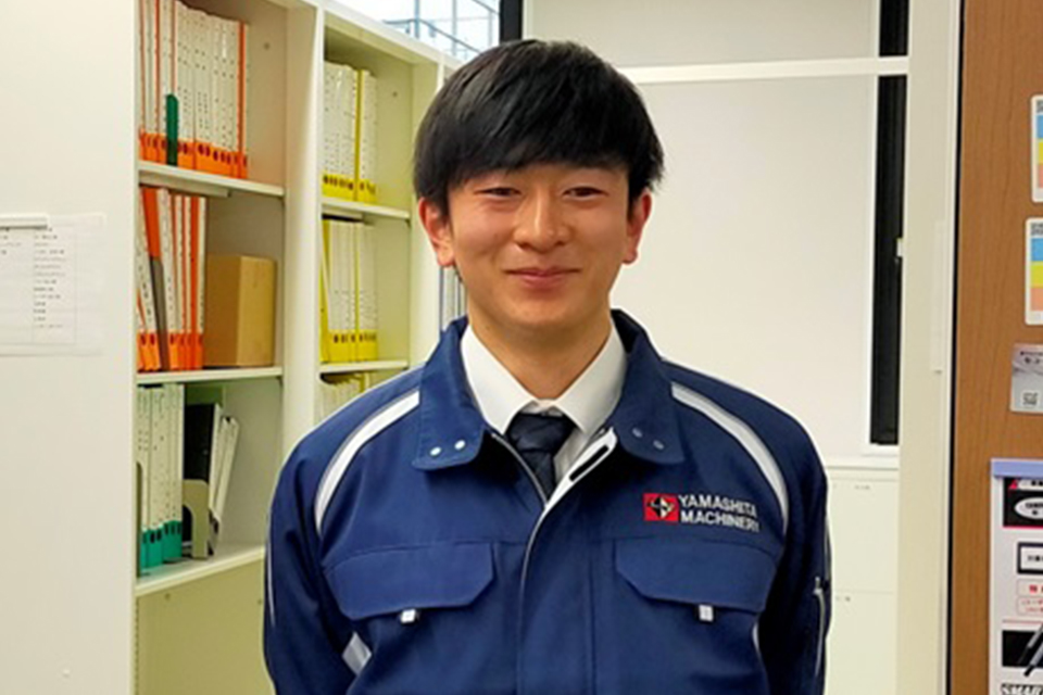 その依頼をやり切ったときに「助かったよ。」と言っていただいた時、自分もお客様の生産活動の1ピースになれていると実感できます。また私が就活生だった時に、社内を回らせていただいたことがあったのですが、上司と話をする部下を何度か見かけることがあり、その話をする雰囲気がとても和やかで、私の会社というものに対するイメージがいい意味で壊されました。山下機械のこの雰囲気が忘れられなくて、ここが合うと思いました。